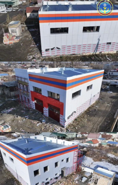 Өлкө боюнча республикалык бюджеттин эсебинен жаңы салынып жаткан бир типтүү 12 өрт-куткаруу бөлүгүнүн имараттары бир жана эки кабаттан турат.