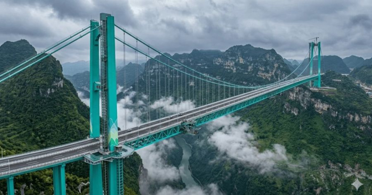 Маалыматка ылайык, мындай көпүрө Гуйчжоу провинциясында курулган. Жаңы курулган көпүрө дүйнөдө рекорд жаңыртып, Франциядагы атактуу Мийо көпүрөсүн артта калтырды.