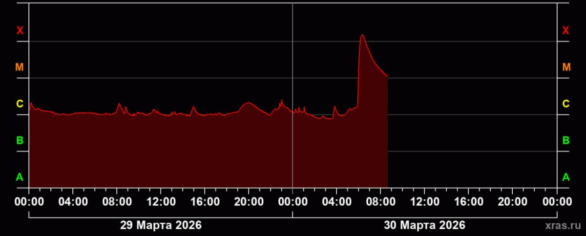 Бүгүн, 30-мартта Күн бетинде жогорку деңгээлде X класстагы күчтүү жарылуу катталды. Бул тууралуу Орусиянын Күн астрономиясы лабораториясы билдирди.