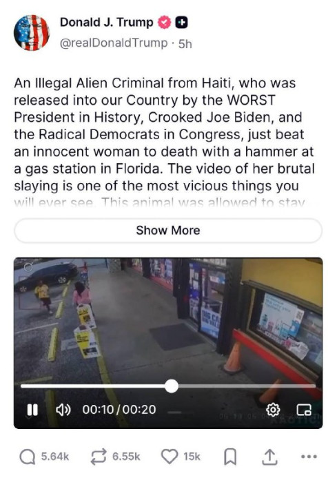 АКШнын президенти Дональд Трамп Флорида штатындагы май куюучу жайда аялга жасалган ырайымсыз кол салуунун видеосун жарыялады. Тиешелүү видеону өзүнүн Truth Social социалдык тармактагы баракчасында бөлүшкөн.