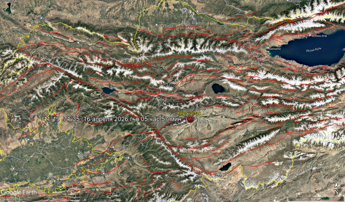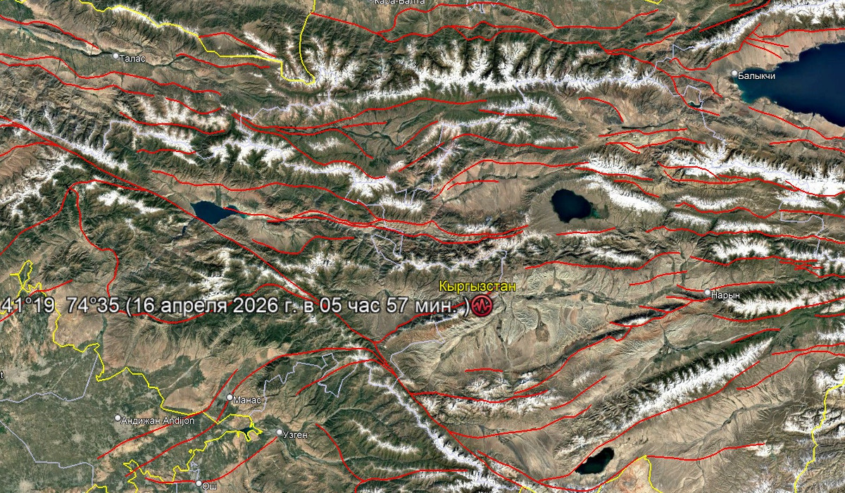 Нарында бүгүн, 16-апрель күнү саат 05:57де күчү 4,5 баллга жеткен жер титирөө болду. Бул тууралуу Сейсмология институту кабарлады.