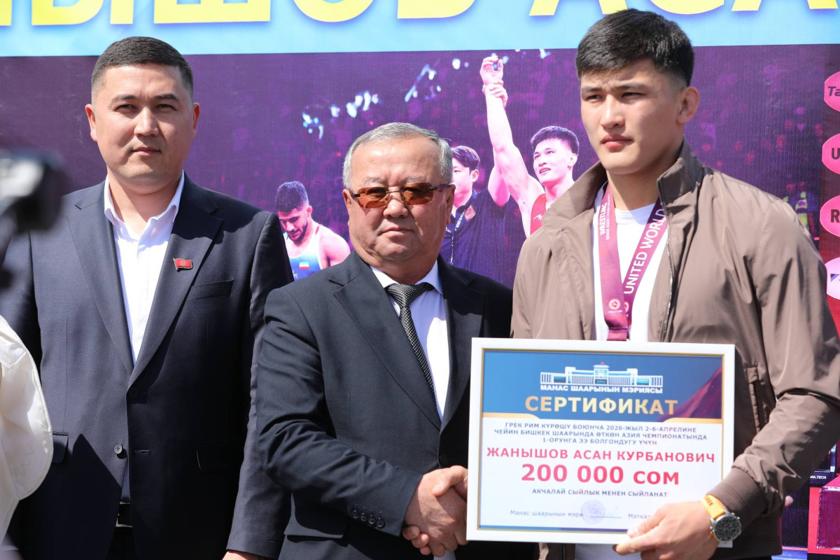 Маалыматка ылайык, иш-чарага Манас шаарынын мэри Абдупата Маткаликов, аймактын бийлик өкүлдөрү жана жергиликтүү тургундар катышкан. Иш-чаранын жүрүшүндө жергиликтүү бийлик тарабынан спортчуга 200 миң сом, ал эми анын машыктыруучусуна 60 миң сом өлчөмүндө акчалай сыйлыктын сертификаттары тапшырылган.