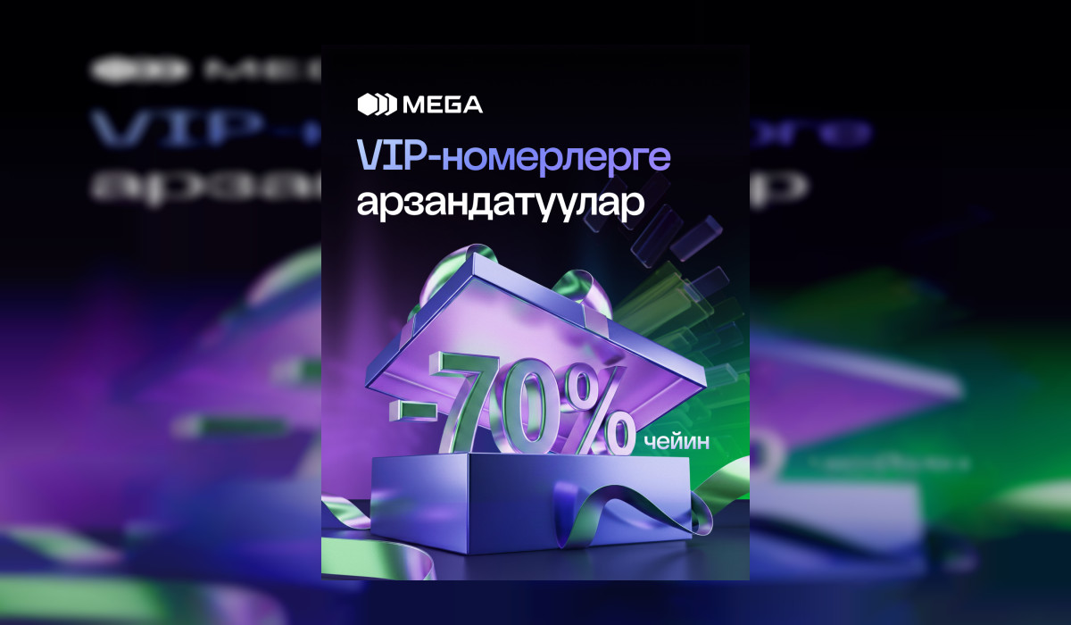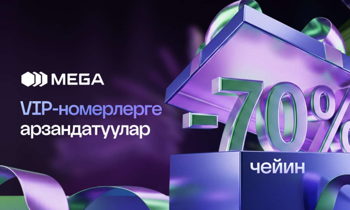 2026-жылдын 20-апрелинен тарта 11-майына чейин сизде кооз, эстеп калууга оңой номерлердин айкалышы бар премиум VIP-номерди 70% га чейин арзандатуу менен сатып алуу мүмкүнчүлүгү бар. Бул жөн гана номер эмес, бул – статуска ээ болуунун, ыңгайлуулуктун жана таанымал болуунун белгиси. Бул сунуштан пайдалануу үчүн, «Элдики + MegaTV» тизмегин, «МегаБезлимит» же MIX тарифтик пландардын бирин кошуп алуу жетиштүү.