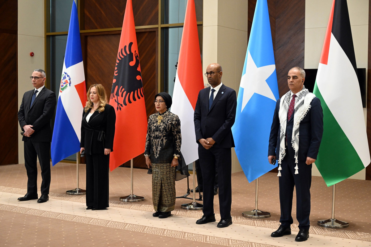Маалым болгондой, Ишеним грамоталарын Доминикан элчиси Алехандро Ариас Сарсуэла, Албаниянын элчиси Блерта Кадзадеж, Индонезиянын элчиси Сити Рухайни Жухятин, Сомалинин элчиси Фатхудин Али Мохамед жана Палестинанын элчиси доктор Уайл Ахмед Батрехи тапшырышты.