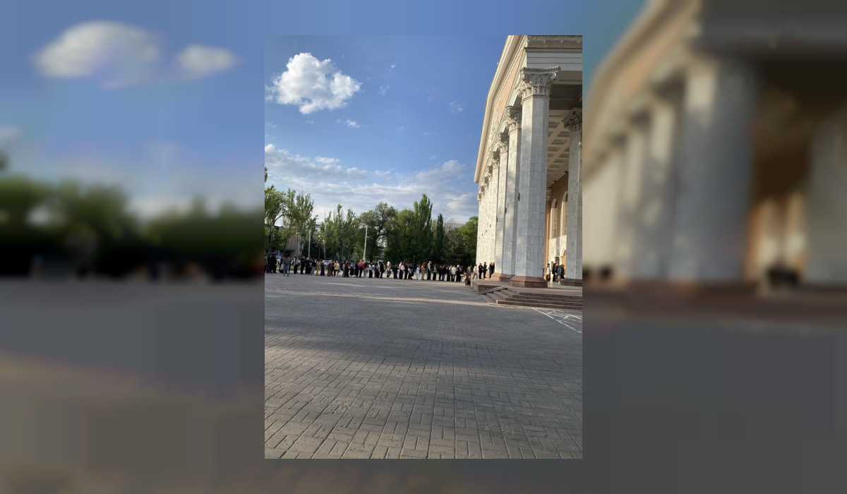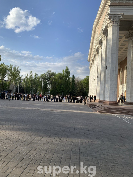 Порталыбыздын ЭЛДИК КАБАР бөлүмүнө окурман Бишкектеги Опера жана балет театрында концертке кезек күткөндөрдүн сүрөт, видеосун жөнөттү. Айтымында, мындай кезек кечээ, 21-апрелде белгилүү япониялык скрипкачы Реносукэ Фукуданын концертинде жаралган.