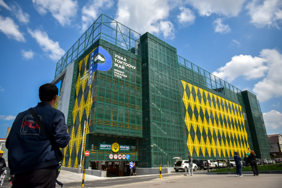 Беш кабаттан турган унаа токтотуучу жай Жукеев-Пудовкин көчөсүндө жайгашкан. Ал тургундар жана шаар коноктору үчүн унаа токтотуучу жайларды камсыз кылуу жана короолорго болгон жүктү азайтуу максатын көздөйт.