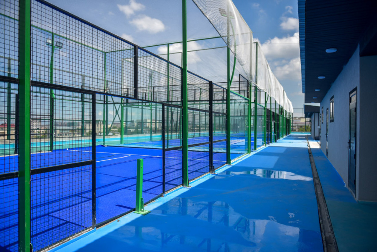 Ошондой эле имараттын чатырында спорттук инфраструктура жайгашкан. Анда коопсуз жабдуусу бар үч теннис корту курулган.