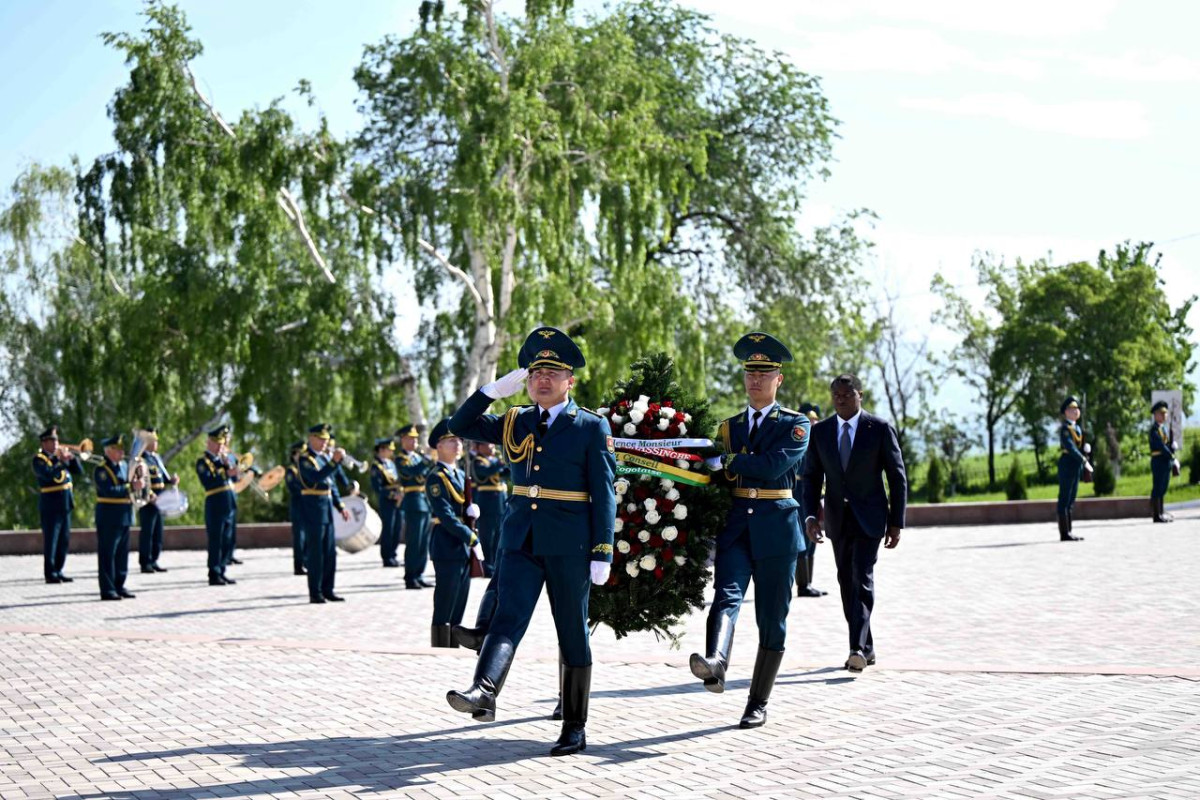 Гнассингбе министрлер кабинетинин төрагасы Адылбек Касымалиевдин коштоосунда 1916-жылдагы каргашалуу окуялардын курмандыктарына арналган мемориалга гүлчамбар койду.
